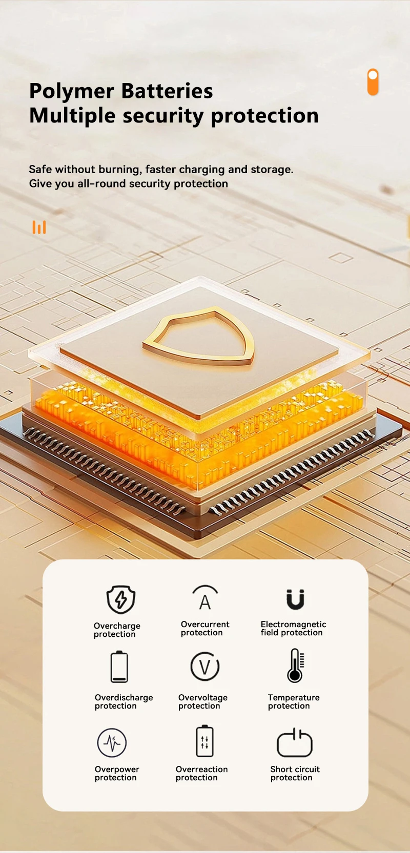 1. Multiple protection systems to avoid threats such as overcharging, overdischarge, overvoltage, overcurrent, short circuit, and overpower.